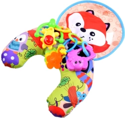 Ez az univerzális babahenger remek segítség otthon és utazáskor is. Hason fekve a baba előtt rögzített játékok találhatók, amelyek nyújtózkodásra és a fej emelésére ösztönzik, így természetes módon erősítik a hát- és nyakizmokat. A zizegő mini alátét és a színes csörgők támogatják a szenzoros fejlődést és fejlesztik a finommotorikát.