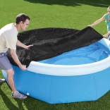 Válassza az okos megoldást a tisztább vízért és kevesebb karbantartásért. A takaró kerek, peremes, összeszerelhető medencékhez alkalmas 244 cm átmérőben (Fast Set sorozat). A kompakt csomagolás könnyen tárolható, ajándéknak is kiváló.