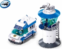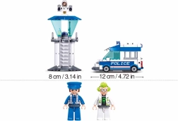 Az építőjáték 245 precíz elemet tartalmaz, amelyeket összerakva valósághű rendőrségi berendezést hozhatunk létre, ami tartalmaz egy autót és egy tornyot is.