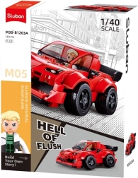 Ezzel a Sluban építőkészlettel felépíthet egy elegáns piros versenyautót kifinomult részletekkel. A készlet tartalma: