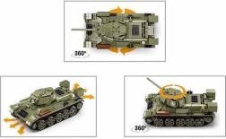 A Sluban T34/76 modell tank egyedi szórakozást nyújt a gyermekeknek, a technikai képességek fejlesztésének lehetőségével kombinálva. A távirányításnak köszönhetően a tank előre és hátra tud menni, 360 fokban tud fordulni, és a tornya is 360 fokban forgatható. Az építőkészlet tartalmaz: