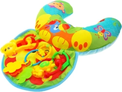 - Hason fekvős játék, nyaktámasz utazáskor, stabilizálás babakocsiban/autósülésben