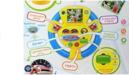 Ez az interaktív gyerek kormány számos funkciót kínál, amelyek játékos módon fejlesztik a készségeket és az érzékeket. A kormány forgatására a kijelzőn az autó az úton halad, felgyulladnak az irányjelzők, a gombok megnyomásával pedig aktiválható a duda és a különböző hangeffektek. A feltűnő sárga–türkiz színkombináció különösen vonzó a gyerekek számára.