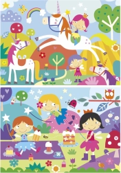Fejleszd a gyerekek fantáziáját a unikornisok és tündérek motívumú varázslatos puzzle-készlettel. A csomag 2 darab, egyenként 48 részes puzzle-t tartalmaz azonos méretben, ideális a koncentráció, a logika és a finommotorika gyakorlásához. A kész képek kompakt mérete kb. 28 × 20 cm, amely remekül illik a gyerekasztalra.