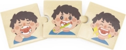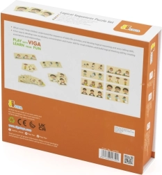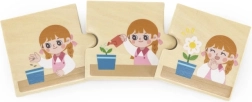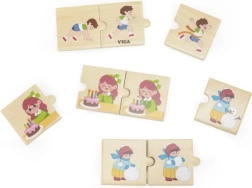 Ez a fa kirakós a VIGA cégtől lehetőséget ad a gyermeknek, hogy összerakjon 8 színes puzzle készletet, amelyek különböző gyermekek mindennapi életében végzett tevékenységeket ábrázolnak. Népszerű tevékenységek közé tartozik a kézmosás, futás vagy a tortán lévő gyertyák elfújása.