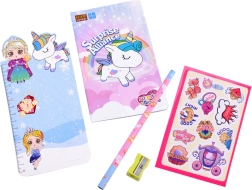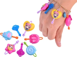 - 7 kulcs; ceruza; hegyező; lánc; 2 medál karkötőkhöz; színes gyöngyök; karkötőlánc; dísz – összehajtható szívecske; kapcsok; függők; matricák; jegyzetfüzet; kartonvonalzó hercegnővel; könyvjelző unikornissal