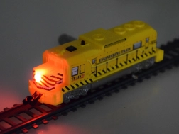 A mozdony tetején lévő gomb megnyomására elindul a szerelvény, és felkapcsol a piros fény. A gyerekek élvezhetik a gördülékeny haladást és a valódi üzemet idéző effektust.