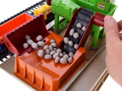 Állítsd meg a vonatot az állomásnál, és a mechanikus elemek segítségével rakodj kavicsokat a vagonba. A gyerekek fejlesztik finommotorikájukat és képzelőerejüket, miközben egy valósághű „bányászati” műveletet élnek át.