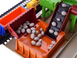 Ez a vonatszett szórakozást és tanulást ötvözve örvendezteti meg a kis mozdonyvezetőket. Az elágazásokkal ellátott ovális pálya a rakodóállomáshoz vezet, ahol a gyerekek áthelyezhetik a „köveket”, és figyelhetik, ahogy a vonat elszállítja őket. A egygombos, egyszerű vezérlés és a fényhatások még hitelesebbé teszik a játékot.