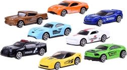 A készlet 8 különböző színű és stílusú kisautót tartalmaz – a versenyautóktól a rendőrségi motívumokig. Remek változatosság versengéshez és gyűjtéshez.