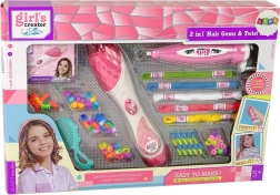 Ez a komplett hajdíszítő készlet segít a gyerekeknek kifejezni a fantáziájukat. A két eszközzel – a gyöngyapplikátorral és a cérnacsavaróval – könnyedén készíthetők egyedi frizurák: a visszafogott, színes cérnával fonott copfoktól a feltűnő, gyöngyös mintákig.