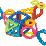 Merüljön el a kreatív építés világában a Magformers Challenger 30 Set mágneses építőkészlettel. Ez a sokoldalú játék lehetőséget kínál a gyerekeknek, hogy különféle háromdimenziós tárgyakat alkossanak kétdimenziós műanyag sokszögek segítségével. A készlet tartalmaz új formákat, mint MINI hatszög és MINI nyolcszög, amely neon színekben érhető el.
