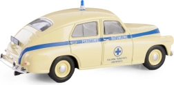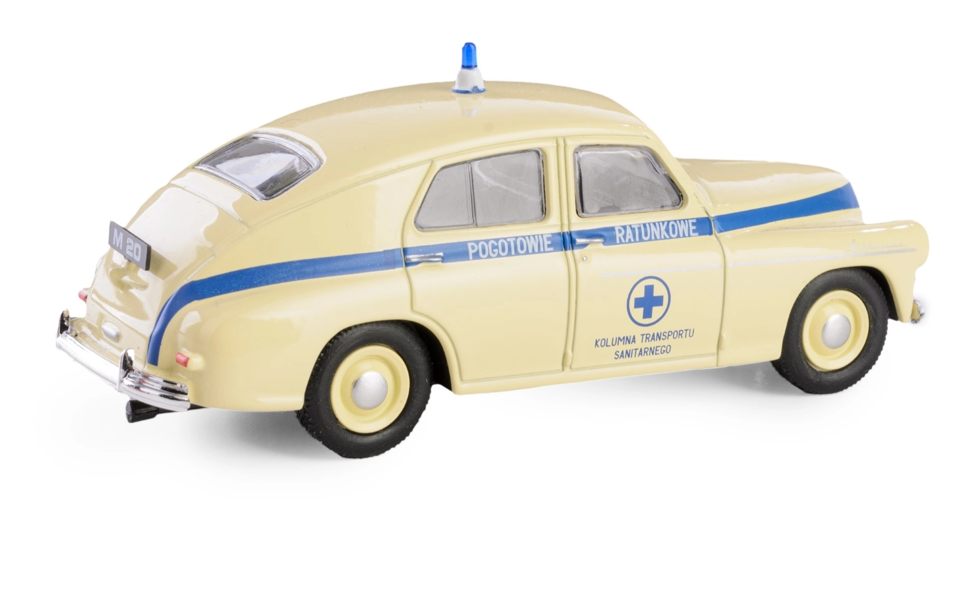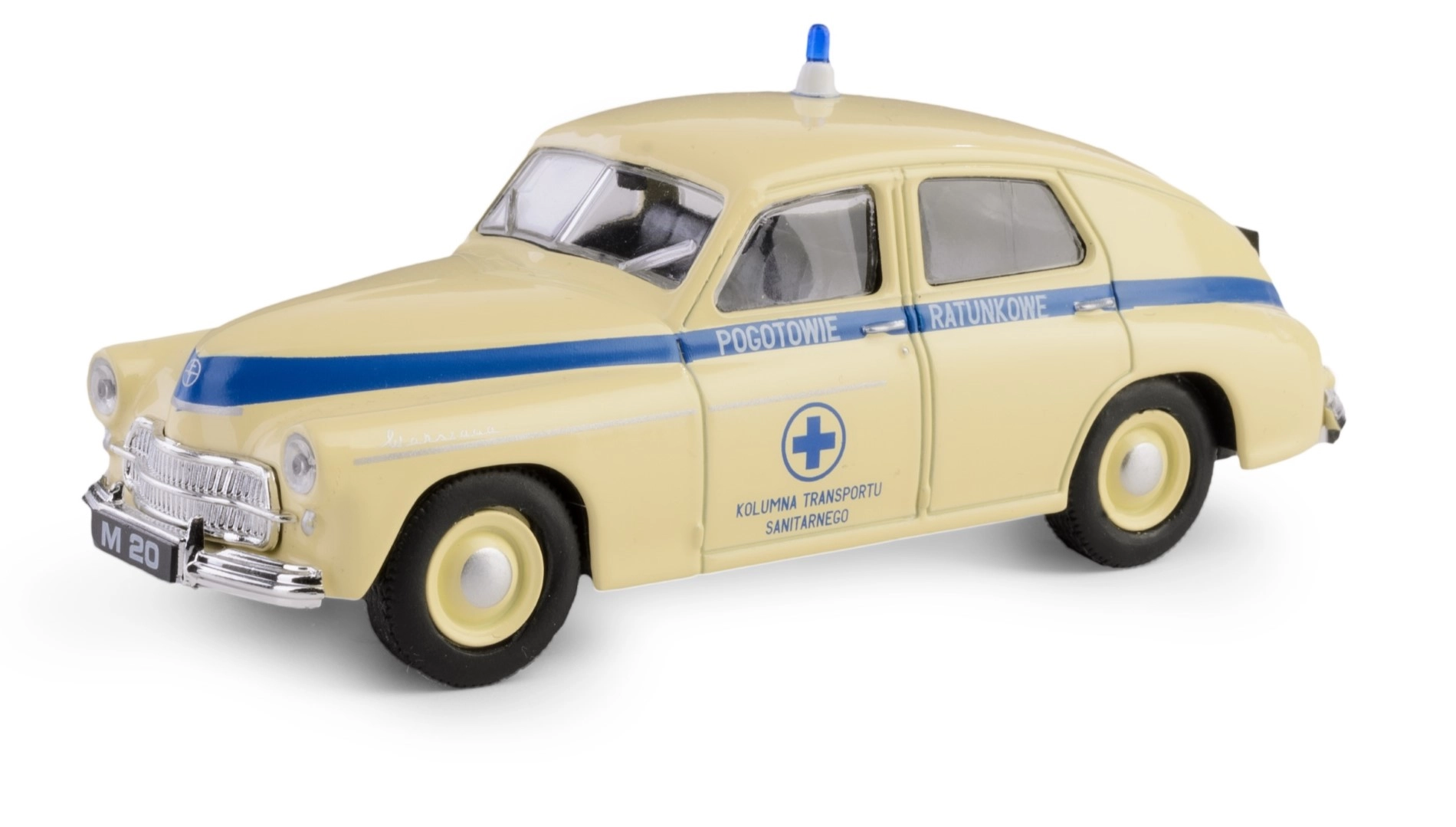 Fedezze fel a PRL korszak ikonikus történelmi autóját – a Warszawa mentőautó-változatát 1:43 méretarányban. Ez a részletgazdag modell masszív fém karosszériát ötvöz pontos műanyag elemekkel, hűen visszaadva a legendás jármű karakterét.