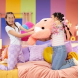 A Fluffie Stuffiez Pillow Fight sorozat aranyos, pihe-puha nyuszi alakú párnája kényelmet és végtelen szórakozást nyújt a gyerekeknek. Nyomkodhatod, szőrt „lehúzhatsz” róla, töltheted, és persze szeretheted – tökéletes játékhoz, dekorációnak és összebújáshoz.