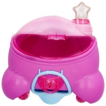 A lila házikó egyben stílusos jármű segway-jel. Az eltávolítható kerekeknek köszönhetően Coney útra kelhet, miközben a mozgatható ízületek és a levehető szilikon ruha megkönnyítik az öltöztetést és az új történetek megalkotását. A csomagban több mint 11 tematikus kiegészítő található, köztük üvegecske, cumi, kisállat és további meglepetések.