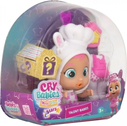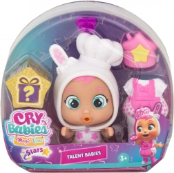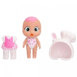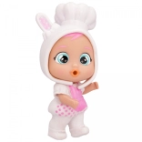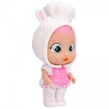 Fedezd fel Coney-t a Cry Babies Magic Tears Stars Talent kollekcióból – egy kis péket puha szilikon kapucnis öltözetben, nyuszifülekkel. A jobb ízületi mozgathatóságnak köszönhetően könnyen leültetheted, felállíthatod, és bevonhatod a kreatív játékhelyzetekbe. Miután vízzel megtöltöd a cumisüveget és finoman megnyomod a pocakját, a baba valódi könnyeket hullat, ami segít a gyerekeknek megélni és fejleszteni érzelmeiket.