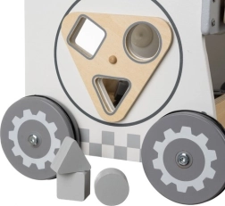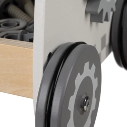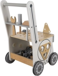A KRUZZEL 3 az 1-ben fa szerelő kocsi – műhely egyesíti a szórakozást és a tanulást. A gyerekek kis ezermesterként játszhatnak valódi fa szerszámokkal, alakzatokat válogathatnak és felfedezhetik a fogaskerekek működését. Az MDF-ből és fából készült konstrukció gumis kerekekkel stabilitást, hosszú élettartamot és csendes működést biztosít.