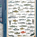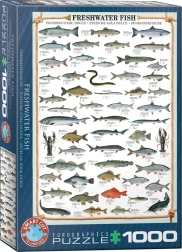 Lépjen be a víz alatti világba ezzel a kirakóval, amely a legismertebb édesvízi halfajokat tartalmazza. Ez az eredeti puzzle nem hagyományos alakú darabokat tartalmaz, és négy világnyelven van szöveg.