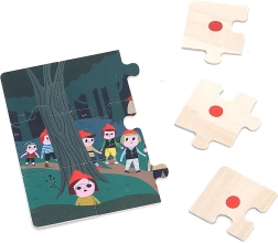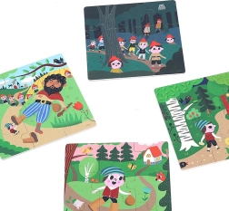 Ez a szett 4 darab 9 részes puzzle-t tartalmaz, amelyek közvetítik Tom Thumb meséjét. Minden kép a történet gyönyörű ábrázolása, ami ösztönzi a gyermeki fantáziát és javítja a koncentrációt és a logikai gondolkodást.