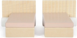 A kétszemélyes ágy könnyen két különálló ágyra osztható, ami rugalmasságot és különféle játékszcenáriók lehetőségét biztosítja.
