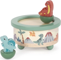 Ez a klasszikus játék doboz ideális kiegészítője a gyerekszobának. Az aranyos dinoszauruszok és kellemes dallamok minden gyerek figyelmét felkeltik. A dinoszaurusz figurák a doboz tetején mágnesekkel vannak rögzítve, és a dallam játszása közben forognak, lenyűgöző látványt nyújtva minden kis őslényrajongónak. A fából készült játékok ebben a kollekcióban fejlesztik a gyerekek kreativitását, motoros készségeit és inspirálják a természet és történelem tanulását. A dinoszauruszos játék doboz támogatja a zene szeretetét és remek játék a képzelet fejlesztésére.