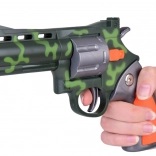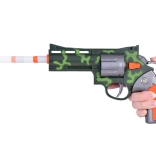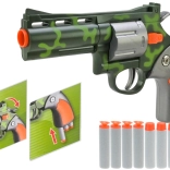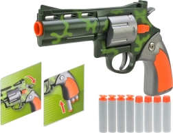A szett tartalmaz egy kompakt pisztolyt álcázó mintával, amely kényelmesen tartható egy kézben. A habszivacs és puha gumi töltények maximális biztonságot és könnyedséget biztosítanak. A szett 6 töltényt tartalmaz.