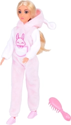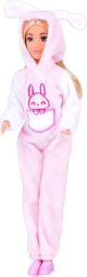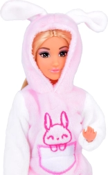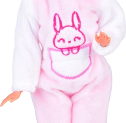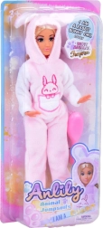 A bájos ANLILY baba rózsaszín-fehér, nyuszis pizsamában örömet szerez a szerepjátékokat kedvelő kicsiknek. Van hosszú, fésülhető szőke haja, mozgatható ízületei, és tartozék a rózsaszín hajkefe és a levehető tornacipők.