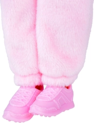 A mozgatható végtagoknak köszönhetően a baba különböző pózokba állítható, a rózsaszín tornacipők pedig könnyen le- és visszavehetők.