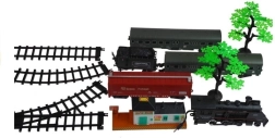 A készlet tartalma: mozdony, tehervagon, három kisebb vagon, állomás, két fa, sínek és vízadagoló a füsthatáshoz. Csak helyezzen be 4 darab AA elemet (nem tartozék) a tehervagonba, csatlakoztassa a mozdonyhoz, és a fűtőelem rövid előmelegítése után már indulhat is a járat.