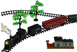 Ez a részletgazdagon kidolgozott vonatpálya a kis és nagy vasútrajongóknak egyaránt örömet okoz. A mozdony a valósághű kéményfüsttel és fényekkel stabil, ellipszis alakú síneken halad, amelyeket állomás és fák egészítenek ki a még autentikusabb hangulatért. Az egyszerű, pattintós sínkapcsolatokat a gyerekek is könnyedén kezelik, a minőségi műanyag pedig hosszú élettartamot biztosít.