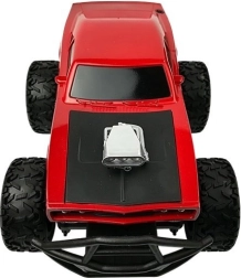 Vörös távirányítós terepjáró R/C ideális kalandos utakhoz aszfalton és terepen egyaránt. Puha gumikerekei és erős lengéscsillapítói segítségével bármilyen akadályt legyőz.