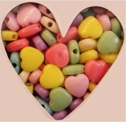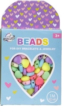 Szív gyöngyök készlet papírdobozban, amely színes gyöngyöket tartalmaz és egy 1 méteres fűzőzsinórt. Ideális ékszerek, például karkötők és nyakláncok készítésére, akár barátoknak, akár saját részre.