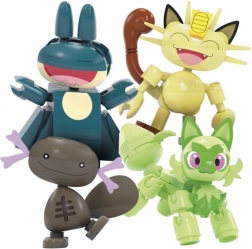 - 4 összeállítható Pokémon: Sprigatito, Meowth, Wooper és Munchlax figurák.