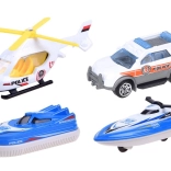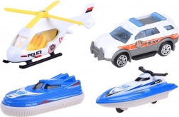 A szett része továbbá egy rendőrségi furgon, egy robogó és egy légpárnás hajó, amelyek a rámpán könnyedén ki- és beállhatnak. A járművek szabadon gördülő kerekeinek és a kidolgozott részleteknek köszönhetően a játék gördülékeny és szórakoztató. A készletet járműpályák, jelzőtáblák, horgony és további kiegészítők egészítik ki a saját történetek megalkotásához.