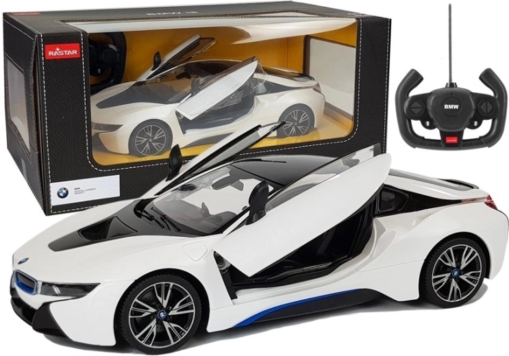 A részletes karosszéria és a belső tér hűen tükrözi a valódi BMW i8-at. Az 1:14 méretarányú modell elegánsan és dinamikusan mutat polcon és akció közben is.