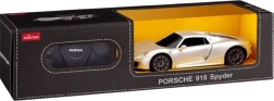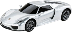 Az ezüst Porsche 918 Spyder modell hűen másolja a valódi autó luxus megjelenését, beleértve a sportos dizájnt és a részletes elemeket.