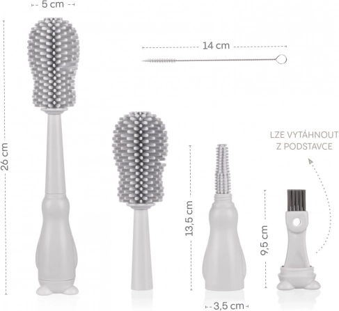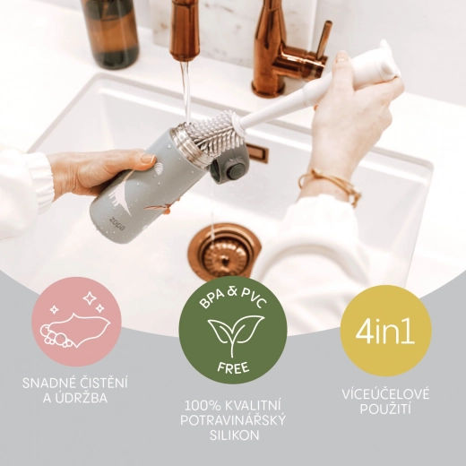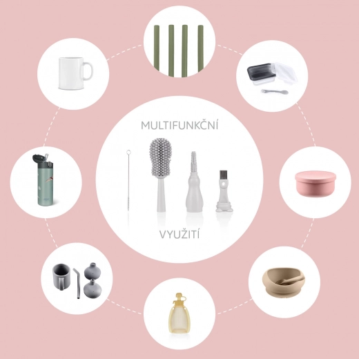 • Három különböző tisztítófelület a sokoldalú használathoz (üvegekhez, cumikhoz és szívószálakhoz)