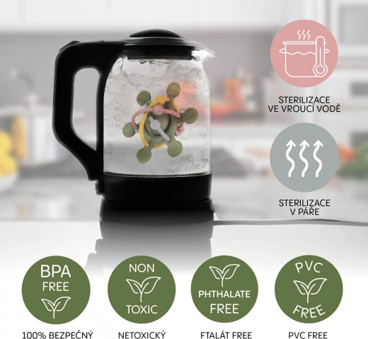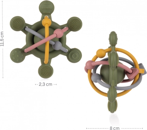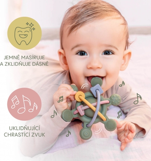 Fedezze fel a felfedezés örömét puha szilikon csörgőnkkel, amelyet kifejezetten a kis kezek számára terveztünk. A különböző textúrák és formák ideálisak az érzékeny íny számára, megkönnyítve az első fogak kibújását. Ez a csörgő nemcsak gyengéden stimulálja az érzékszerveket, hanem támogatja gyermeke motoros készségeinek fejlődését is. A vidám színek és a kellemes csörgőhang fenntartják a figyelmet, és kellemesebbé teszik az első fogak növekedésének időszakát.