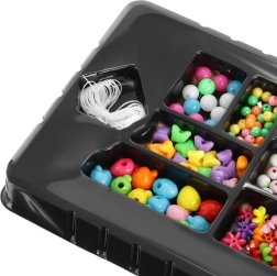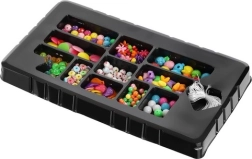 Ez az egyedülálló, ékszerkészítő szett ideális választás a gyerekeknek, akik szeretnék fejleszteni kreativitásukat és közben élvezni órákon át tartó szórakozást. 11 féle gyöngyöt tartalmaz különféle formákban és színekben, rugalmas zsinórral, ami számos lehetőséget biztosít karkötők és nyakláncok készítésére.