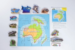 Merülj el az ausztrál fauna lenyűgöző világában a fa kirakóssal, amely 16 darabos térképet és 10 szabadon álló állatot tartalmaz. A kirakós kiváló minőségű MDF anyagból készült, amely biztosítja hosszú élettartamát és biztonságosságát a gyermekek számára. Az állatok valósághűen vannak ábrázolva, ami támogatja a képzeletet és a vizuális megértést.