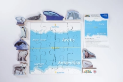 Ez a Just Jigsaws oktatókészlet játékos formában ismerteti meg a gyerekekkel a sarkvidéki területeket. Először 16 masszív darabból kirakják a térképet, majd párosítják és megnevezik azt a 10 állatot, amelyek ezeken a vidékeken élnek. A realisztikus illusztrációk és az MDF-ből készült, stabil figurák kiváló vizuális élményt és tartósságot biztosítanak gyakori használat mellett.