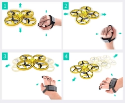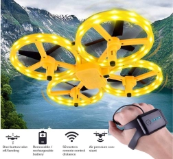 Gesztusokkal irányítható mini drón csuklópántos vezérlővel és LED világítással – Sárga