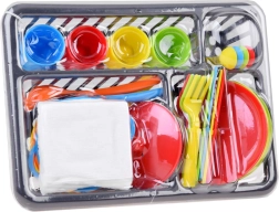 Ajándékozza meg a gyerekeket valósághű háztartás-játékkal a színes gyerek konyhai edénykészlettel. A könnyű és tartós műanyag könnyen tisztán tartható, a vidám színek pedig kreatív terítésre ösztönöznek. A készlet fejleszti a finommotorikát, a fantáziát és a szociális készségeket közös játék közben.