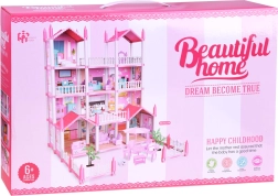 Ez a bájos, rózsaszín villa valóban nagy teret ad a gyerekek fantáziájának: 10 részletesen kidolgozott szoba, erkélyek és terasz hívogat a szerepjátékra – legyen szó otthonról, hotelről vagy panzióról. A szerkezeti elemek és a bútorok tartós műanyagból készülnek, míg a falak, padlók és tetők színes nyomtatású kartonból – összeszerelve a ház nagyon esztétikus és otthonos hatást kelt.