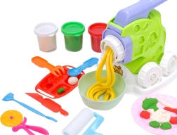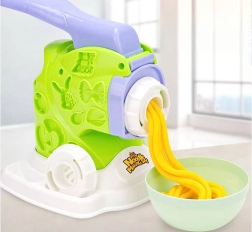 Elég lenyomni a kart, és a tálba máris „tészta” vagy más formák érkeznek a gyurmából. A prés stabil, könnyen kezelhető, és gyors eredményt ad, ami további alkotásra ösztönzi a gyerekeket.