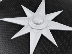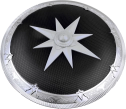 A csillagmintás kerek pajzs és a díszes arany markolattal ellátott kard élethű hatást kelt, és látványos megjelenést ad bármely jelmeznek.