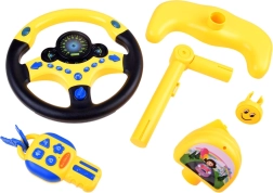 Interaktív kormány kis sofőröknek egy sokoldalúan bővíthető vezetős játék szett. A készlet tartalmaz kormányt, állványt és kulcsos távirányítót.