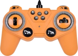 A 2,4 GHz-es távirányítás stabil és zavarásmentes, így külön vezérelheted az előre/hátra haladást, a helyben fordulást, a kar emelését és a kanál munkáját. Nem hiányzik a némítás gomb, a DEMO funkció és a duda sem.