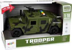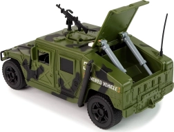 Ha gyermeked érdeklődik a katonai témák, különösen a járművek iránt, ez a katonai autó felkelti a szenvedélyét, és segít felfedezni a katonai világ titkait. A katonai jármű tökéletes kiegészítő minden kis hadsereg- és katonai motívumok kedvelőjének gyűjteményéhez. Úgy tervezték, hogy megszólítsa a kis katonákat, akik csodálják ezt a hősies, ám veszélyes hivatást. Harci színeivel és széles karosszériájával a valódi katonai járművekre hasonlít, beleértve a tetőn található fegyvert is.