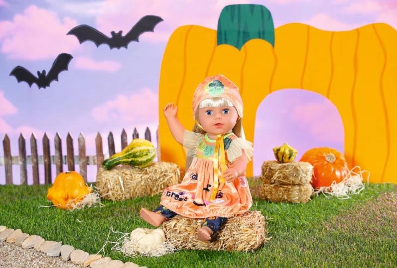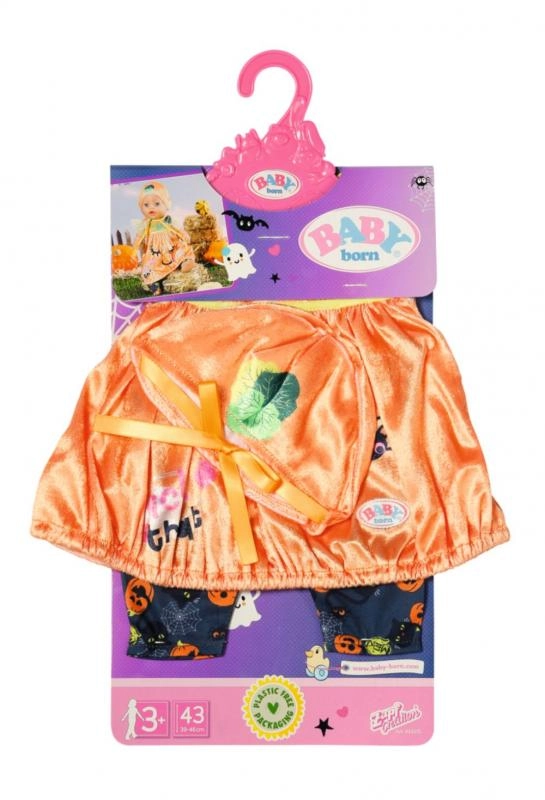Készülj fel a Halloweenra a BABY born babával az ő bájos tök jelmezében. A jelmez tartalmaz: